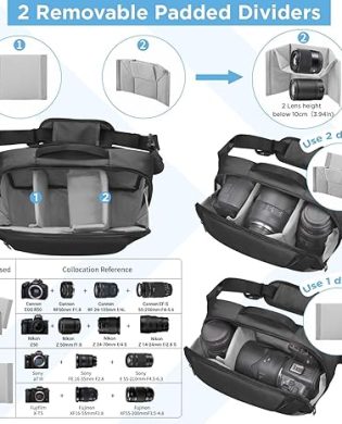 • Camera Sling Bag,Waterproof Camera Case with Tripod Holder,Lightweight DSLR/SLR/Mirrorless Camera Bags Crossbody for photographers-Black Visit the TAAOKA Store